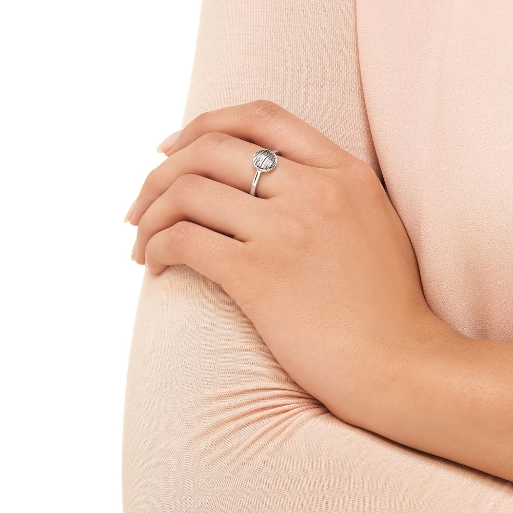 Γυναικείο ασημένιο δαχτυλίδι LINKS OF LONDON από την συλλογή THAMES. Λεπτή βέρα με στρογγυλό motif με διάτρητες ρίγες. Συνδυάστε το και με άλλα κοσμήματα της συλλογής και εντυπωσιάστε με την διακριτική λάμψη τους!