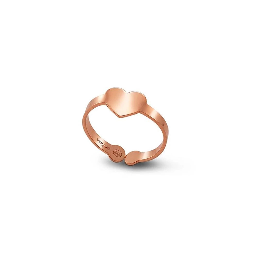 Γυναικείο δαχτυλίδι VOGUE από ασήμι ασήμι 925° με ροζ χρυσή επιμετάλλωση 18Κ. Λεπτή πλακέ βέρα, με μοτίφ καρδιά στο κέντρο.