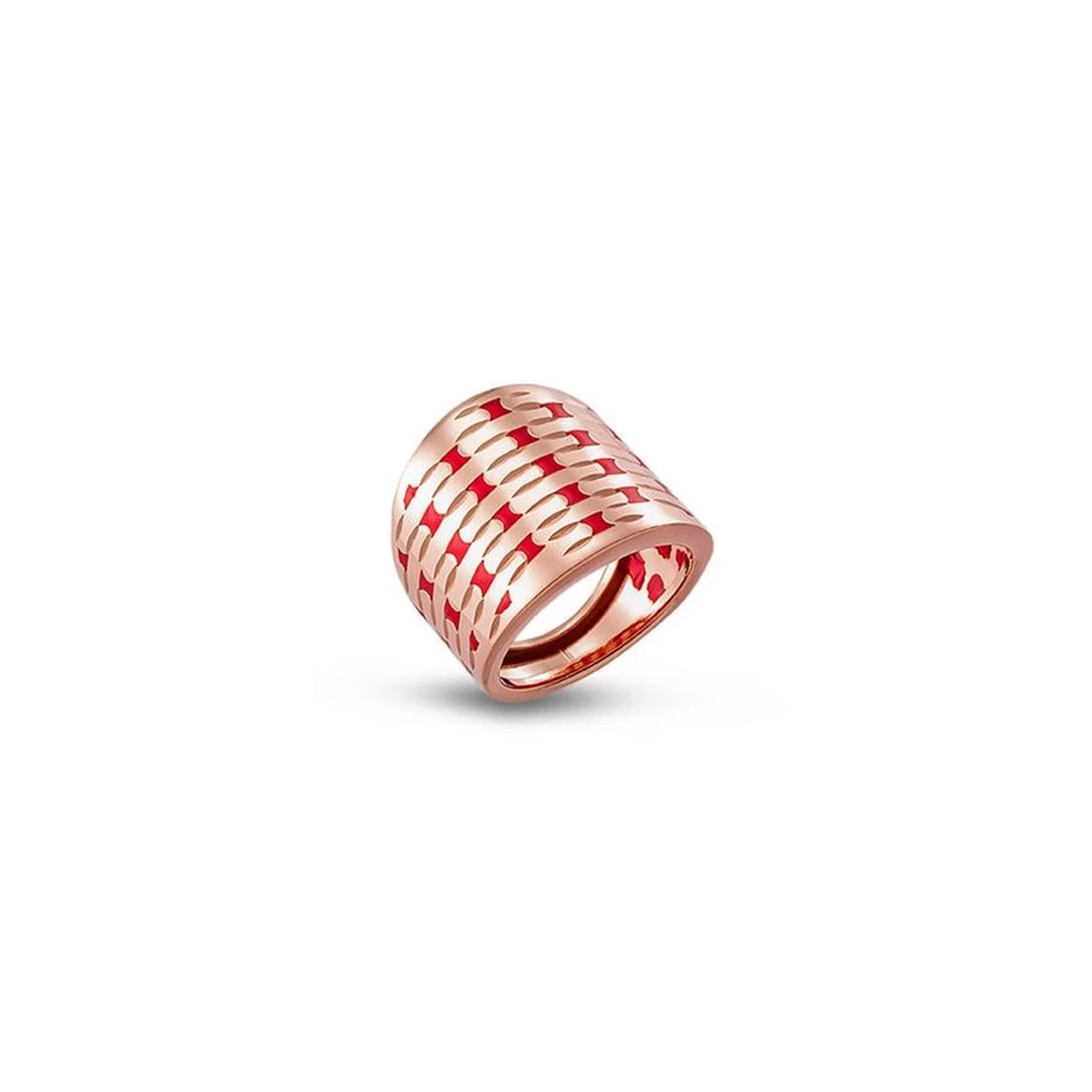 Γυναικείο φαρδύ δαχτυλίδι VOGUE από ασήμι 925° με ροζ χρυσή επιμετάλλωση 18Κ διακοσμημένο με κόκκινο σμάλτο.