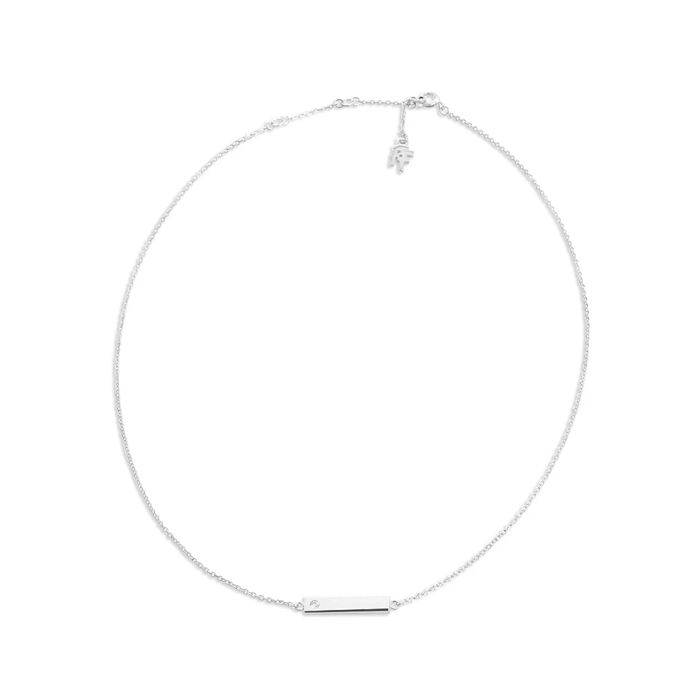 Γυναικείο ασημένιο κολιέ FOLLI FOLLIE από την συλλογή Plate. Λεπτή αλυσίδα με motif σε σχήμα ράβδου, με διακοσμητικό στρας. Ένα κόσμημα με minimal αισθητική που μπορεί να φορεθεί από το πρωί μέχρι το βράδυ.