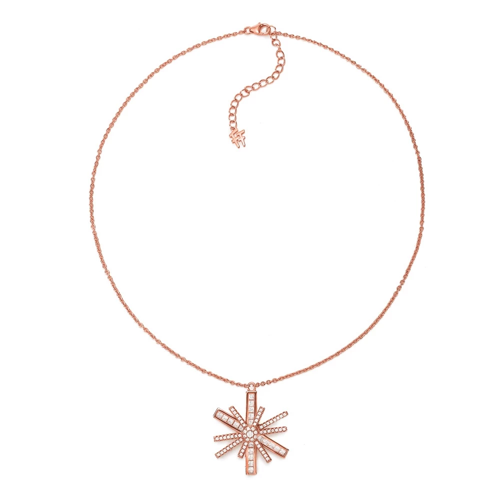 Γυναικείο κολιέ FOLLI FOLLIE STAR FLOWER από επιμεταλλωμένο ροζ χρυσό ασήμι 925°. Μεγάλο παντατίφ σε σχήμα αστεροειδούς λουλουδιού διακοσμημένο με πέτρες ζιργκόν. Διαθέτει λεπτή αλυσίδα με προέκταση, για να ρυθμίζετε το μήκος του. Ένα κομψό κόσμημα με ρομαντική αισθητική, που μπορείτε να φορέσετε από το πρωί μέχρι το βράδυ