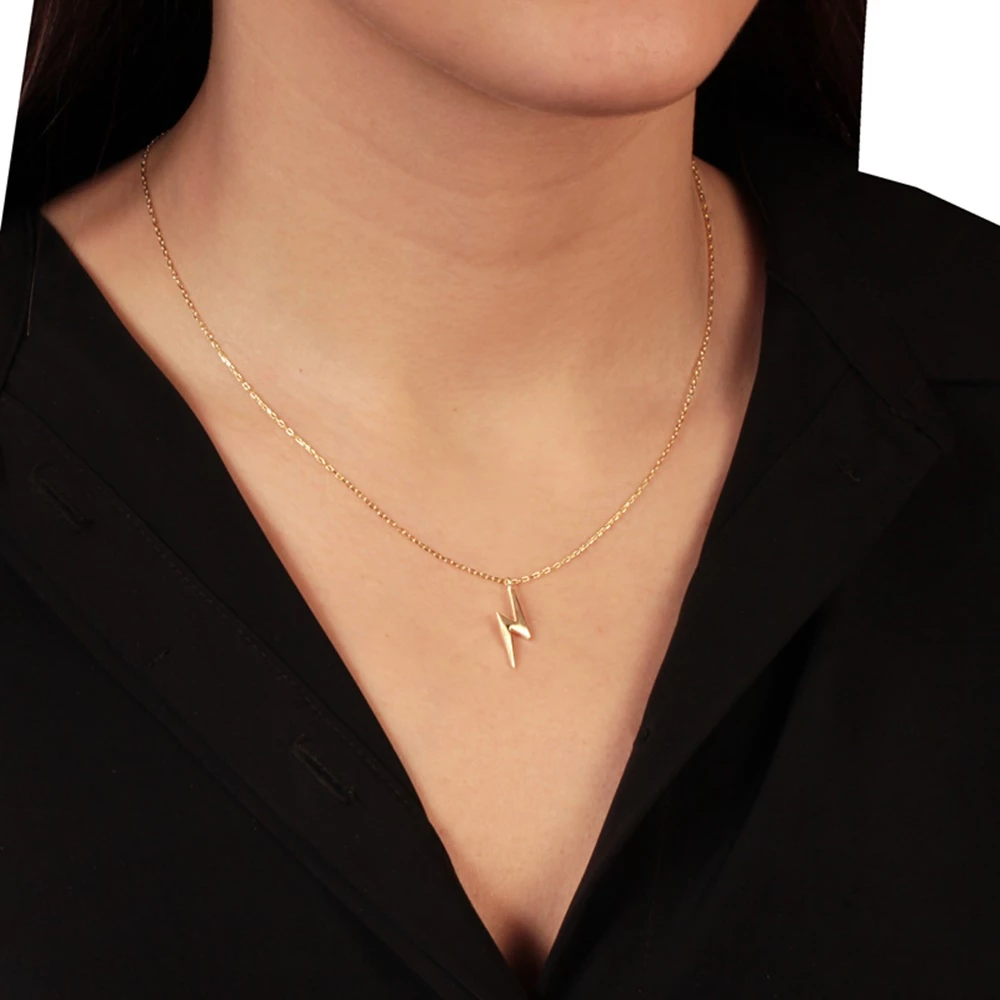 Γυναικείο κοντό κολιέ JEWELTUDE από ασήμι 925 με κίτρινη επιχρύσωση. Λεπτή αλυσίδα με προέκταση και κρεμαστό motif κεραυνός. Ιδανικό για layering και rock chic σύνολα.