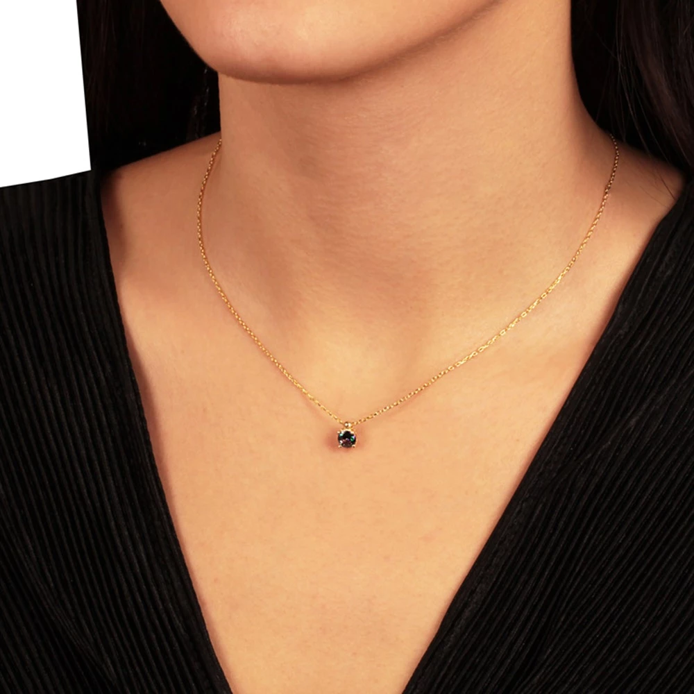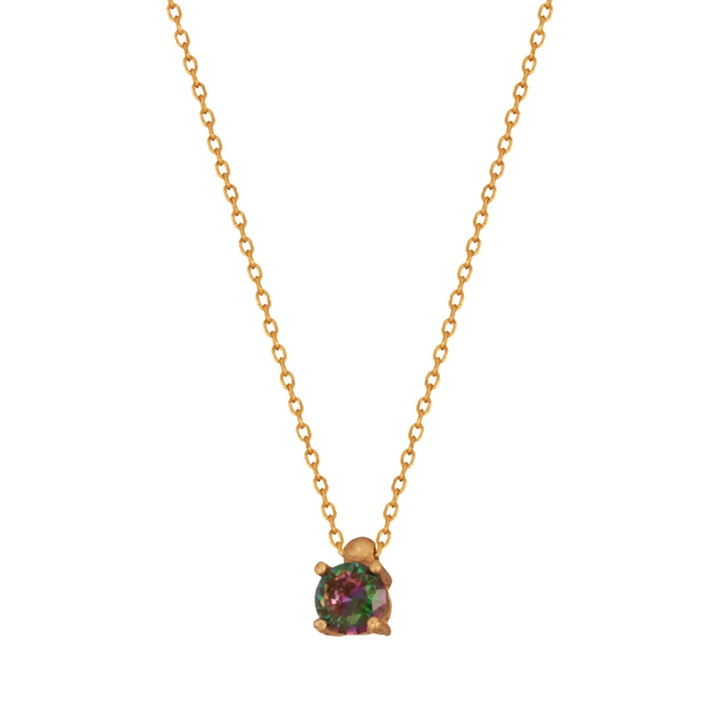 Γυναικείο κολιέ JEWELTUDE από ασήμι 925 επιχρυσωμένο σε 14k. Λεπτή αλυσίδα, με μενταγιόν mini μονόπετρο, από brilliant cut χρωματιστό πράσινο μοβ ζιργκόν, που κλέβει τις εντυπώσεις με την πρώτη ματιά. Η αλυσίδα λαιμού διαθέτει προέκταση κρίκους για να το προσαρμόσετε στο ύψος που επιθυμείτε.