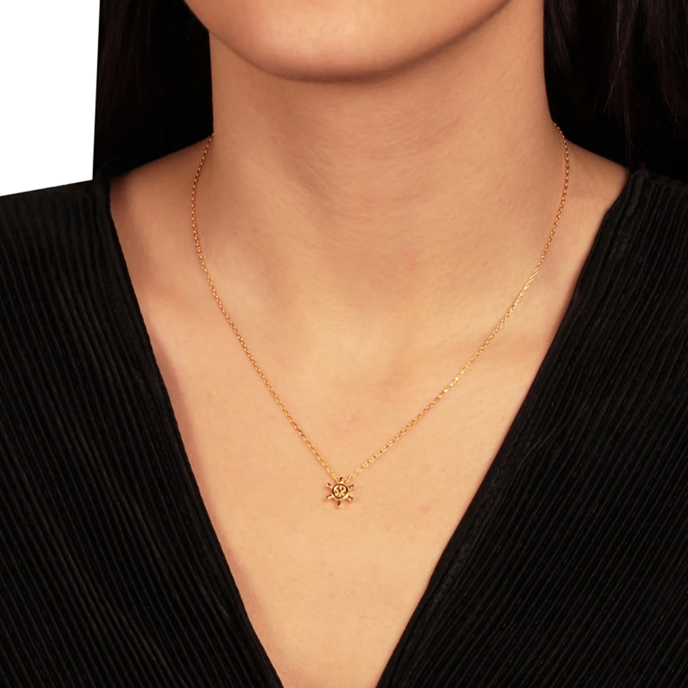 Γυναικείο ασημένιο 925 επίχρυσο κολιέ μενταγιόν Τιμόνι Πλοίου. Ο ορισμός του ταξιδιού σε ενα mini κρεμαστό θησαυρό. Θα χαρίσει μια καλοκαιρινή νότα σε κάθε chic εμφάνιση, μαγνητίζοντας όλα τα βλέμματα θαυμασμού. Το κομψό mini μέγεθος το κάνει ιδανικό για κάθε ημέρα και στιγμή. Μια εξαιρετική επιλογή για εσάς ή για ενα προσωπικό δώρο με προσιτή τιμή με ξεχωριστό συμβολισμό. Διαθέτει προέκταση κρίκους για να το προσαρμόσετε στο ύψος που επιθυμείτε και να το συνδυάσετε και με άλλα για ενα layered fashion look.