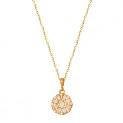 Γυναικείο κολιέ Ροζέτα JEWELTUDE από ασήμι 925 με επιχρύσωση 18k. Το υπέροχο motif διακοσμείται στο κέντρο απο μικρότερα ζιργκόν