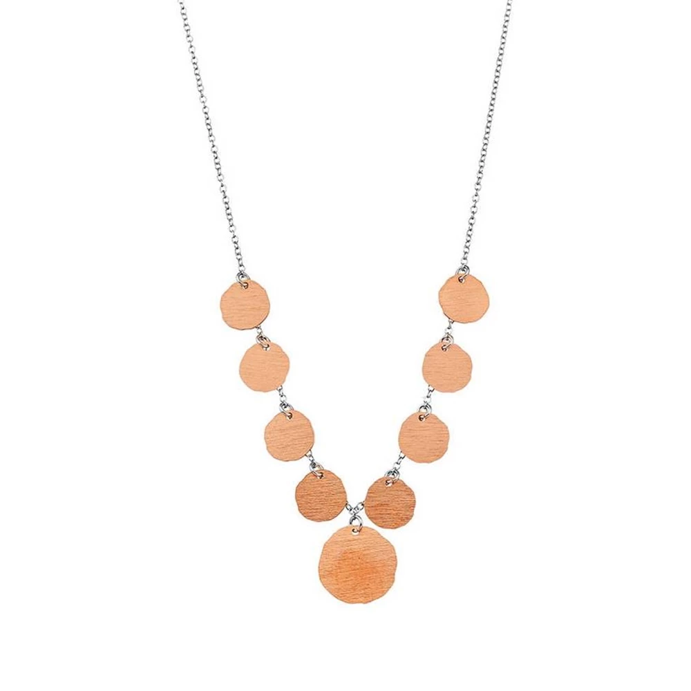 Γυναικείο κολιέ VOGUE από ασήμι 925ᵒ με ροζ χρυσή επιμετάλλωση 18Κ. Λεπτή αλυσίδα με μοτίφ σφυρήλατους κύκλους.
