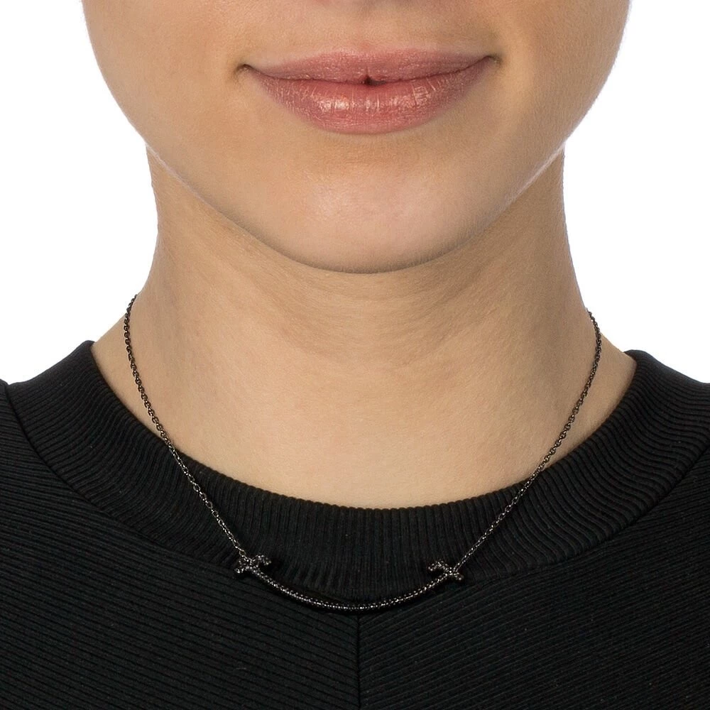 Γυναικείο κοντό κολιέ FOLLI FOLLIE της συλλογής My FF, από ασήμι 925 με μαύρη επιμετάλλωση. Διακριτικό motif διακοσμημένο με μαύρες κρυστάλλινες πέτρες. Minimal αισθητική, με γραμμική σχεδίαση θα γίνει το αγαπημένο σου!