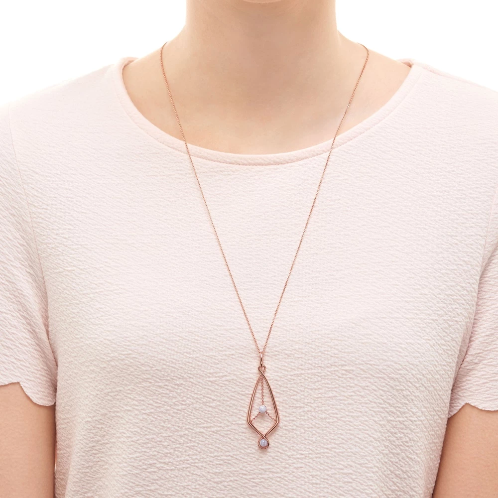 Γυναικείο μακρύ κολιέ LINKS OF LONDON από την συλλογή SERPENTINE. Λεπτή αλυσίδα από ασήμι 925 με ροζ επιχρύσωση18 καρατίων. Εντυπωσιακό μοτίφ στο κέντρο σε γεωμετρικό σχήμα, δαικοσμημένο με δύο πέτρες από μπλε αχάτη.