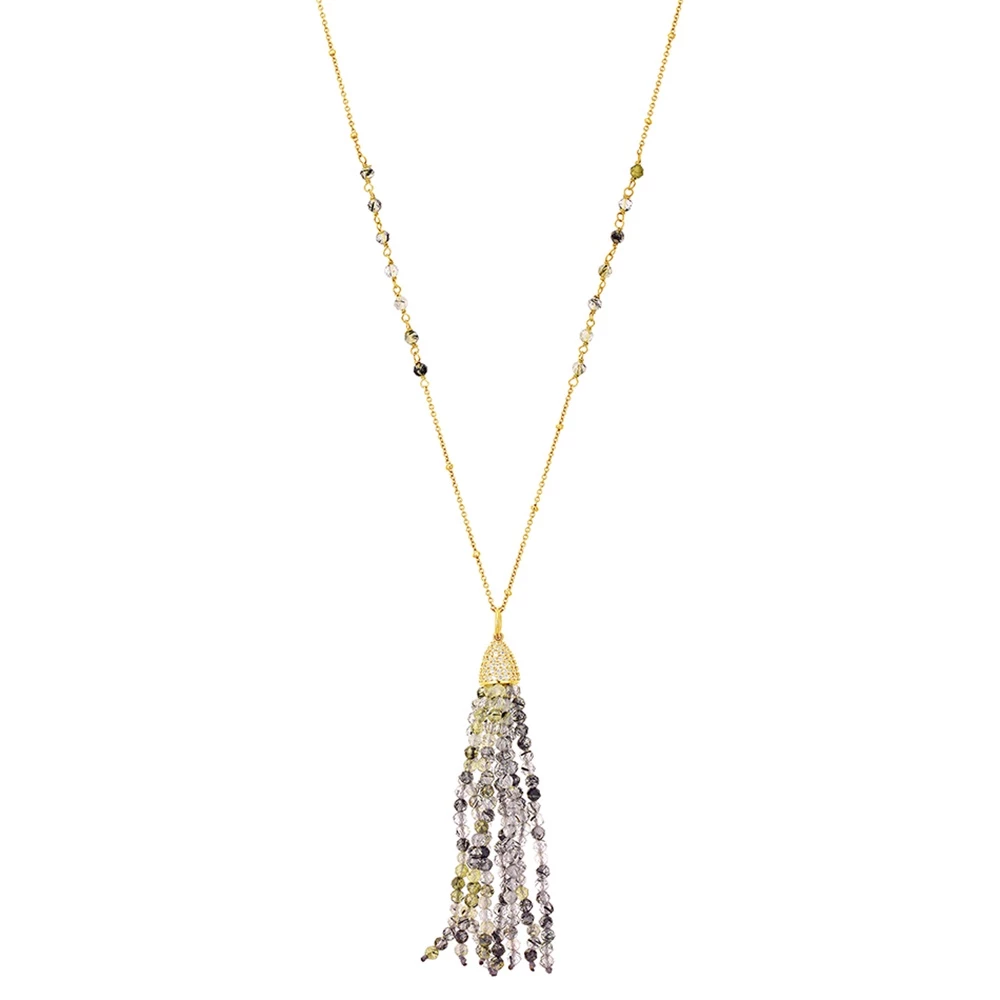 Γυναικείο μακρύ κολιέ VOGUE από επιχρυσωμένο ασήμι. Έχει λεπτή αλυσίδα που διακοσμείται με πολύχρωμες κρυστάλλινες πέτρες και ζιργκόν.
