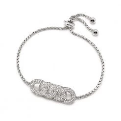 Γυναικείο ασημένιο βραχιόλι FOLLI FOLLIE από την συλλογή FASHIONABLY SILVER TEMPTATION. Λεπτή αλύσίδα με μοτίφ 4 πλεγμένους κρίκους, διακοσμημένοι από διάφανες πέτρες ζιργκόν (cz). Ένα διακριτικό κόσμημα που ολοκληρώνει κάθε σας εμφάνιση.