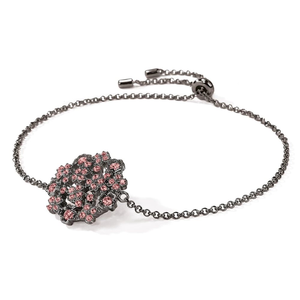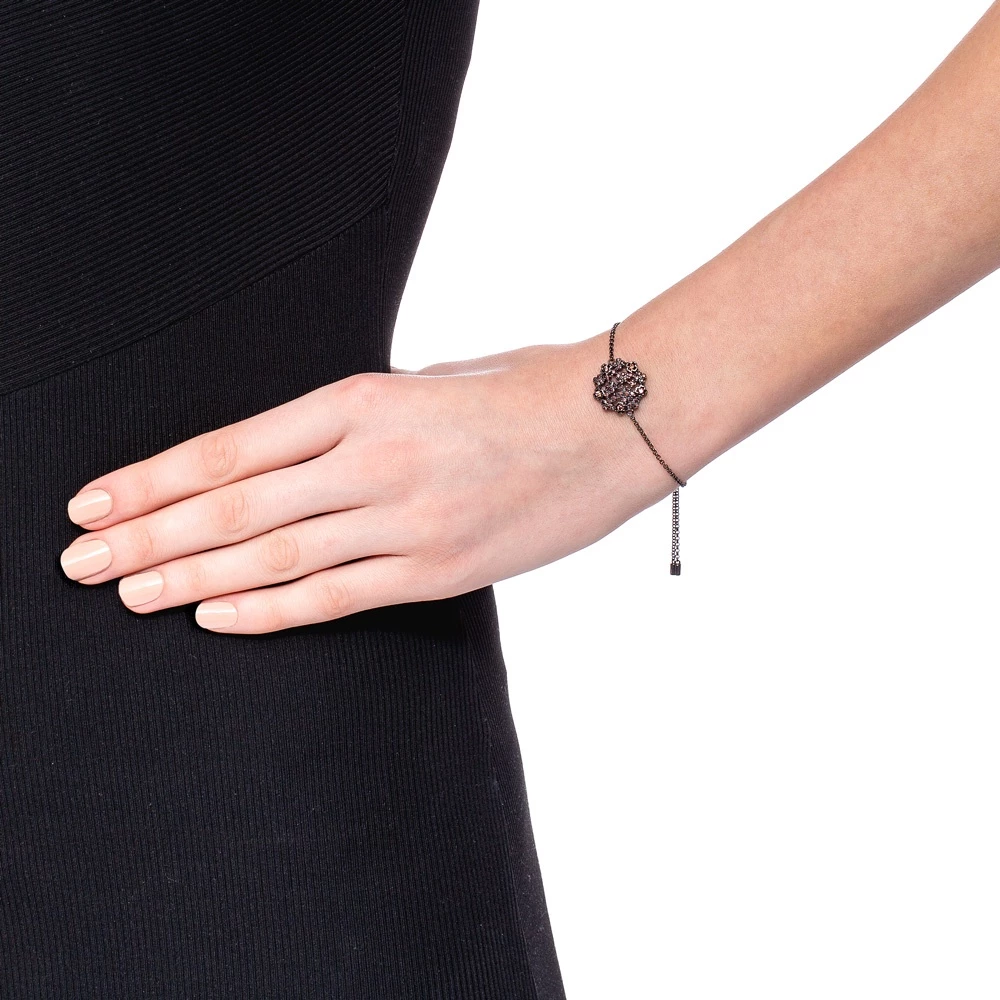 Γυναικείο βραχιόλι FOLLI FOLLIE FF BOUQUET από επιμεταλλωμένο μαύρο ασήμι 925°. Διαθέτει λεπτή αλυσίδα με ρυθμιζόμενο κούμπωμα για να εφαρμόζει άψογα στο χέρι σας και μοτιφ μικρού μεγέθους στο κέντρο σε σχήμα μπουκέτου από λουλούδια, διακοσμημένα με πέτρες ζιργκόν σε καφέ απόχρωση. Ένα διακριτικό και κομψό κόσμημα, που μπορείτε να φορέσετε από το πρωί μέχρι το βράδυ σε κάθε σας εμφάνιση.