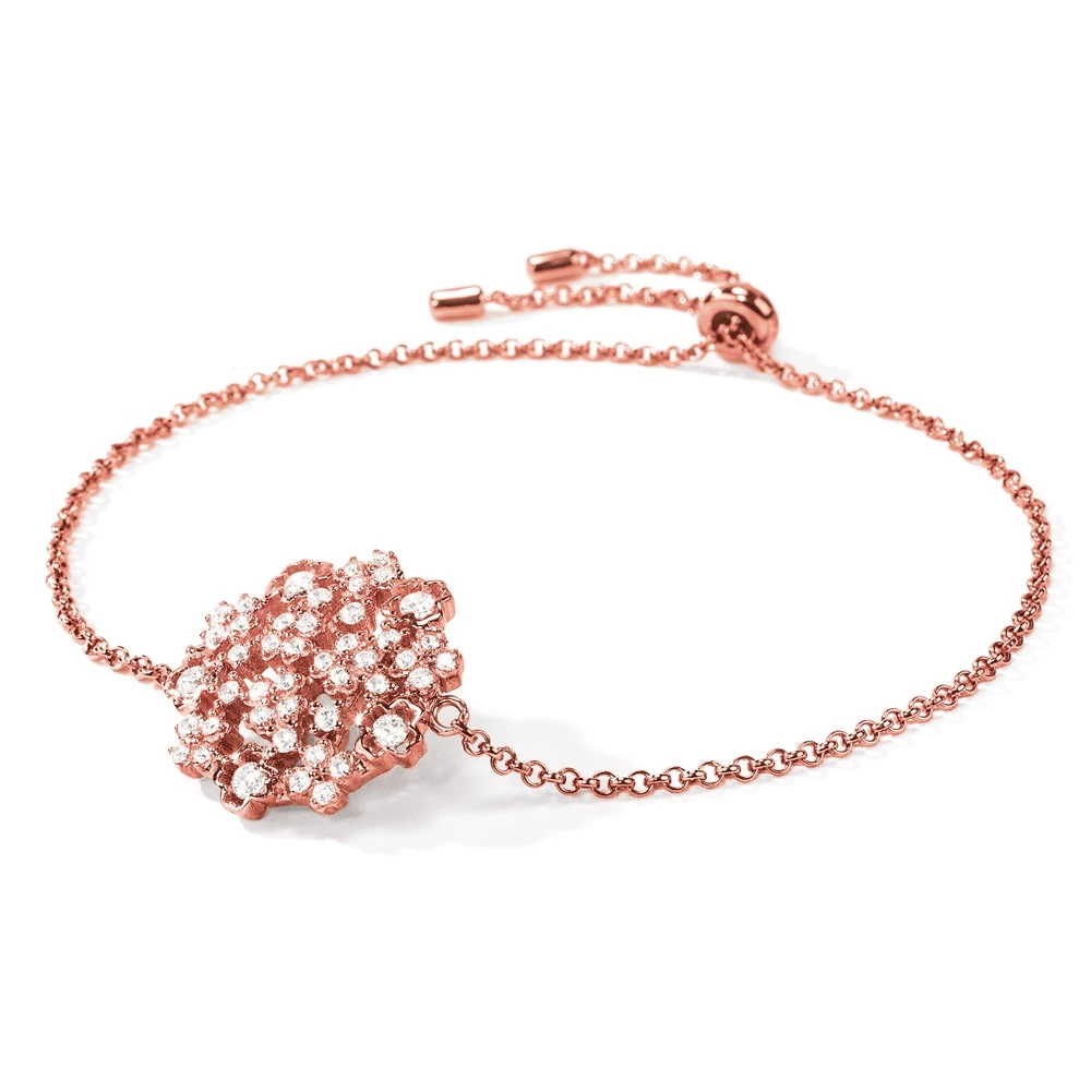 Γυναικείο βραχιόλι FOLLI FOLLIE FF BOUQUET από επιμεταλλωμένο ροζ χρυσό ασήμι 925°. Διαθέτει λεπτή αλυσίδα με ρυθμιζόμενο κούμπωμα για να εφαρμόζει άψογα στο χέρι σας και μοτιφ μικρού μεγέθους στο κέντρο σε σχήμα μπουκέτου από λουλούδια, διακοσμημένα με πέτρες ζιργκόν. Ένα διακριτικό και κομψό κόσμημα, που μπορείτε να φορέσετε από το πρωί μέχρι το βράδυ σε κάθε σας εμφάνιση.
