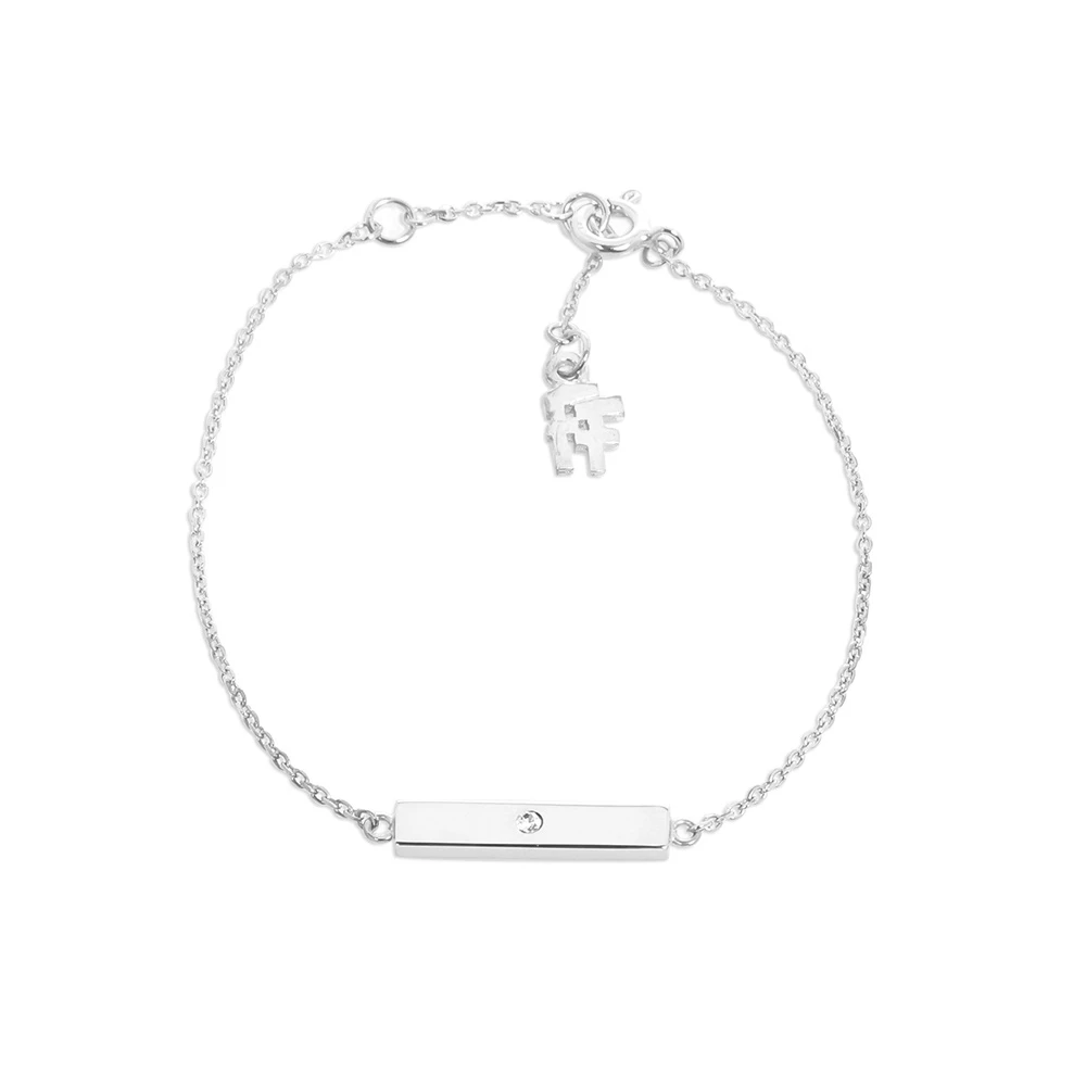Γυναικείο ασημένιο βραχιόλι FOLLI FOLLIE από την συλλογή Plate. Λεπτή αλυσίδα με motif σε σχήμα ράβδου, με διακοσμητικό στρας. Ένα κόσμημα με minimal αισθητική που μπορεί να φορεθεί από το πρωί μέχρι το βράδυ.