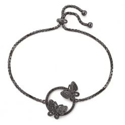 Γυναικείο ασημένιο 925 ρυθμιζόμενο βραχιόλι FOLLI FOLLIE με επιροδίωση σε μαύρο και μαύρες κρυστάλλινες πέτρες από την συλλογή Wonderfly. Ανάδειξε την girly προσωπικότητα σου και φόρεσε το με casual ντύσιμο.