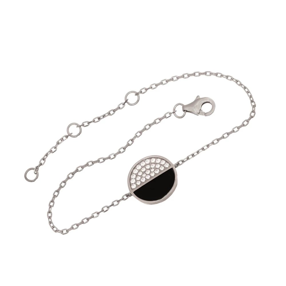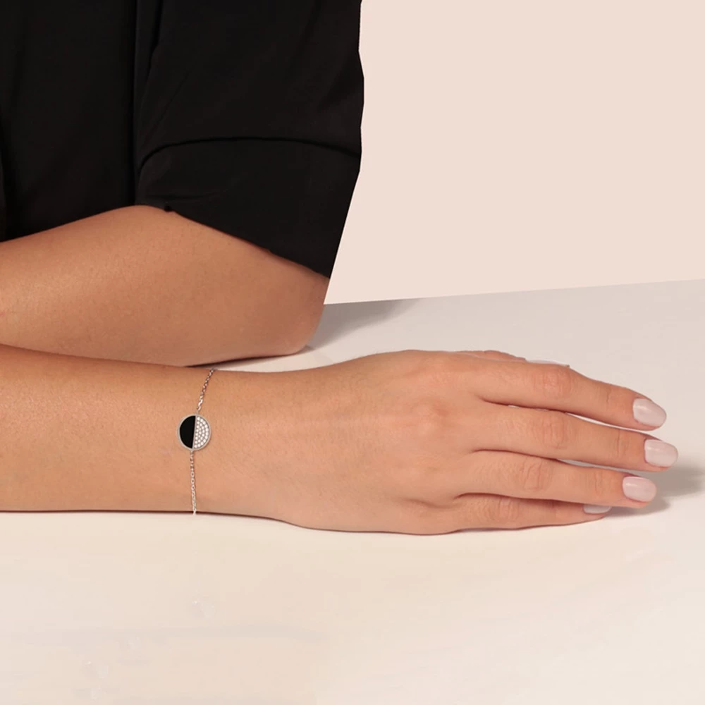 Γυναικείο βραχιόλι JEWELTUDE από ασήμι 925, επιπλατινωμένο σε λευκόχρυσο18k, με motif Κύκλο. Είναι χειροποίητο και φιλοτεχνημένο σε 2 μέρη, το ενα με