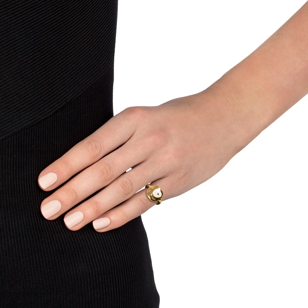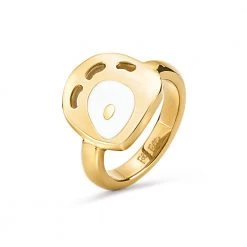 Γυναικείο δαχτυλίδι chevalier FOLLI FOLLIE FF TALISMAN από κίτρινο επιχρυσωμένο ατσάλι. Λεπτή βέρα με μοτίφ μiκρού μεγέθους σε σχήμα ματιού, με λευκό σμάλτο. Ένα εντυπωσιακό κόσμημα, που θα ολοκληρώσει κάθε σας σύνολο.