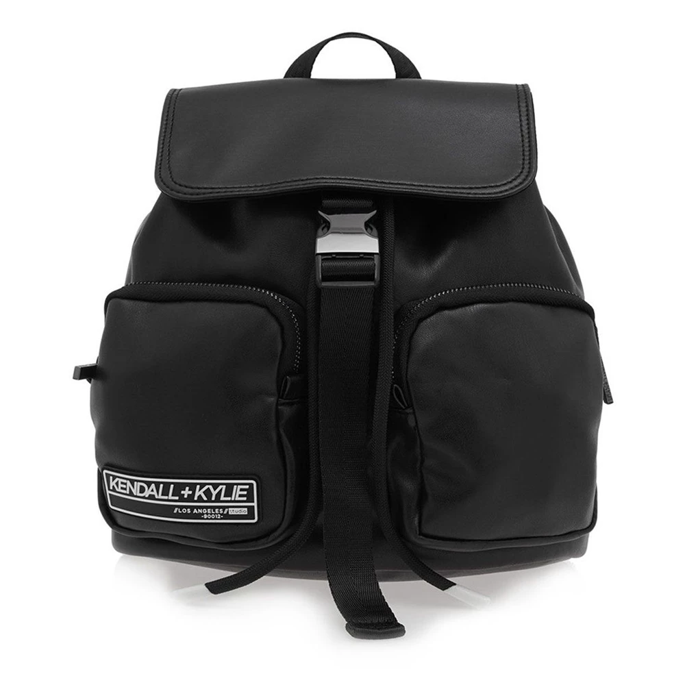 Γυναικείο backpack KENDALL + KYLIE σε μαύρο χρώμα. Από συνθετικό δέρμα, με ρυθμιζόμενους υφασμάτινους ιμάντες για την πλάτη και χειρολαβή στο επάνω μέρος. Διαθέτει δύο εξωτερικές τσέπες με φερμουάρ και κλείνει με κορδόνι και καπάκι.