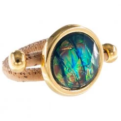 Γυναικείο δαχτυλίδι APOXYLO από κορδόνι φυσικού φελλού, με διακοσμητική μπλε γυάλινη πέτρα σε επιχρυσωμένη μεταλλική βάση. Αυξομειούμενο μέγεθος για να προσαρμόζεται σε όλα τα δάχτυλα. Συνοδεύεται από χειροποίητο κουτί Apoxylo.