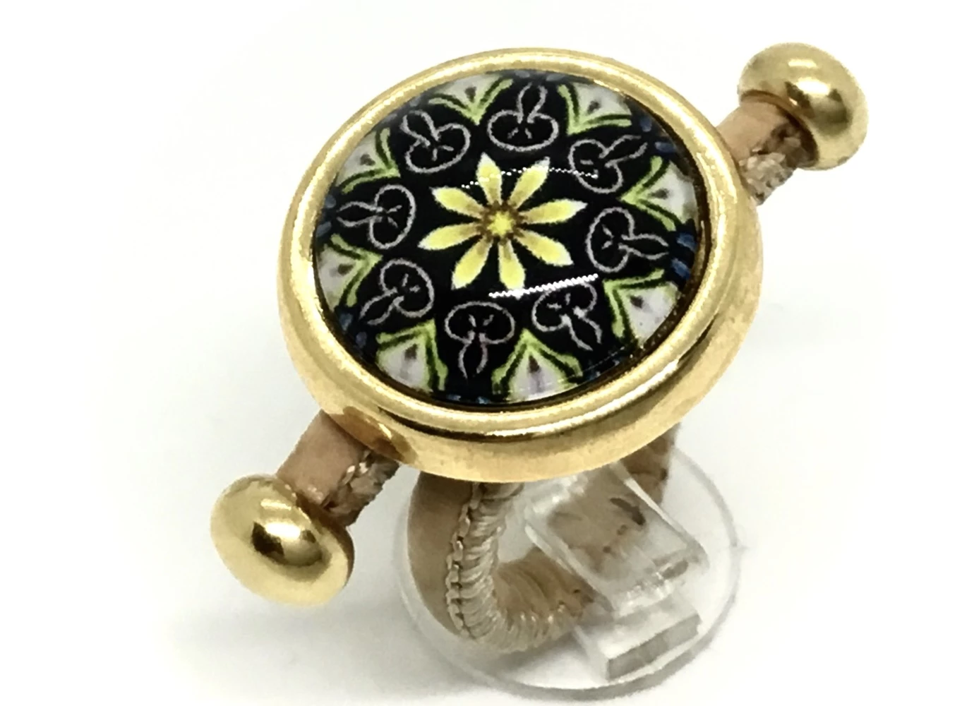 Γυναικείο δαχτυλίδι APOXYLO από κορδόνι φυσικού φελλού, με διακοσμητική πολύχρωμη ακρυλική πέτρα σε επιχρυσωμένη μεταλλική βάση. Αυξομειούμενο μέγεθος για να προσαρμόζεται σε όλα τα δάχτυλα. Συνοδεύεται από χειροποίητο κουτί Apoxylo.