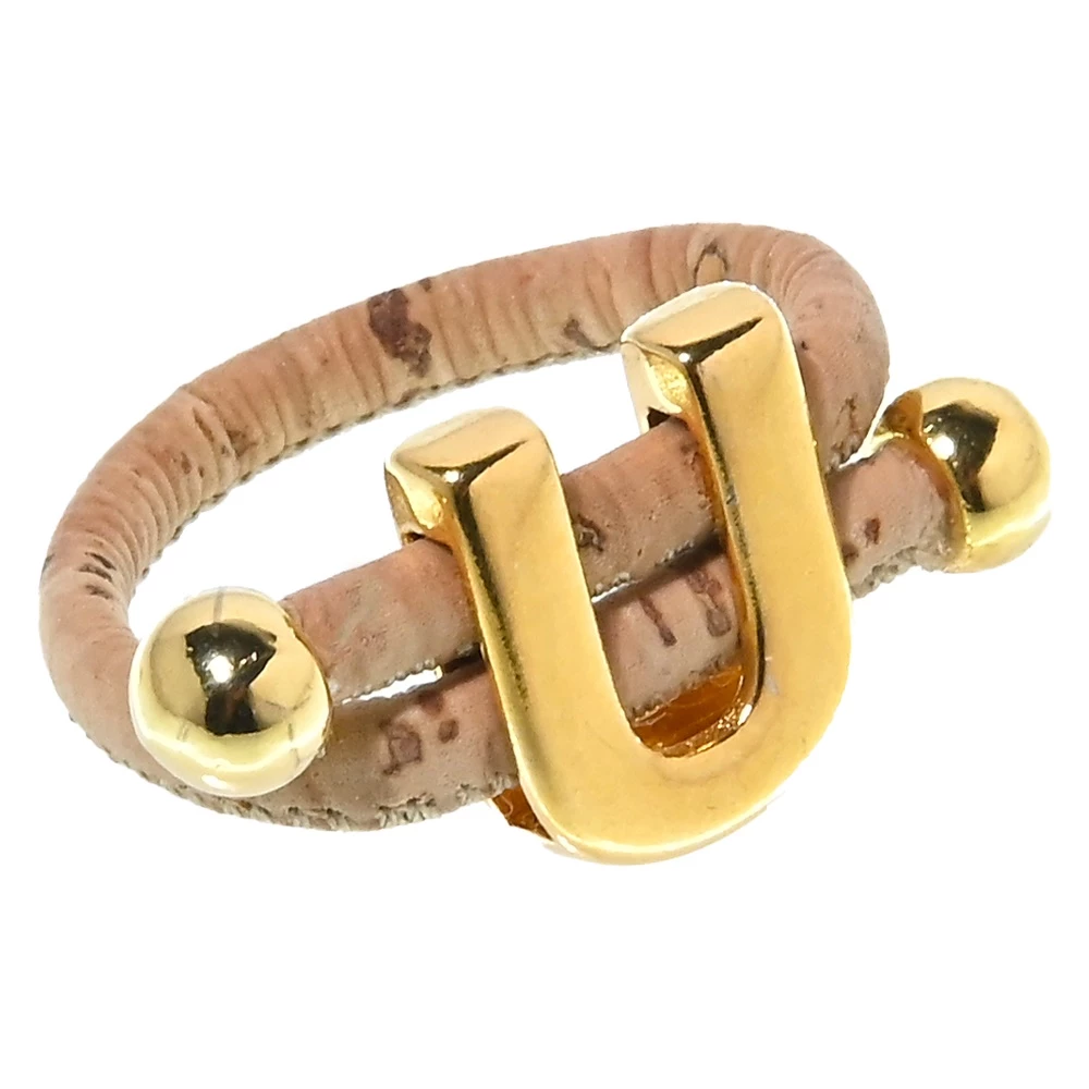 Γυναικείο δαχτυλίδι APOXYLO από κορδόνι φυσικού φελλού, με επίχρυσα στοιχεία. Αυξομειούμενο μέγεθος για να προσαρμόζεται σε όλα τα δάχτυλα.