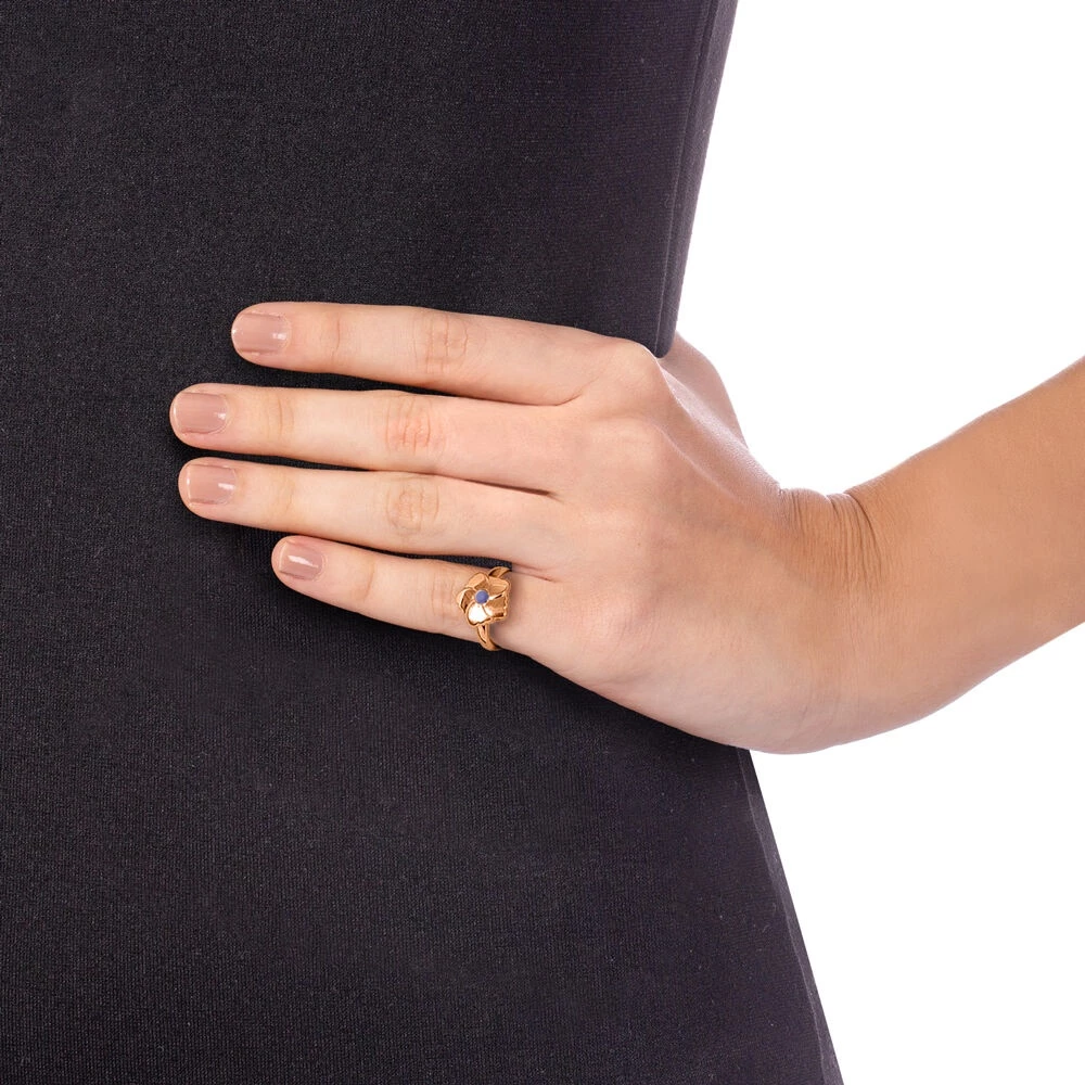 Γυναικείο δαχτυλίδι chevalier FOLLI FOLLIE της συλλογή Bloom Bliss, από ατσάλι με κίτρινη χρυσή επιμετάλλωση. Λεπτή βέρα, με mini motif λουλούδι με λιλά πέτρα από φίλντισι στο κέντρο. Η πιο fashion chevalier επιλογή για ένα trendy look!