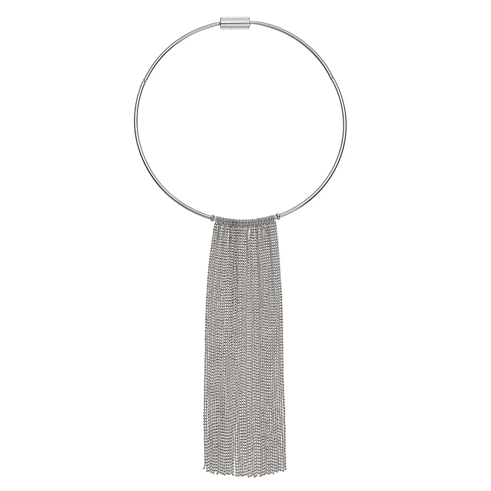 Γυναικείο επάργυρο κολιέ τύπου κολάρο με κρεμαστές αλυσίδες, από τη από τη συλλογή Glow Rays. Εντυπωσιακό κόσμημα που θα χαρίσει λάμψη σε κάθε σας look!