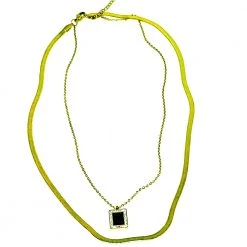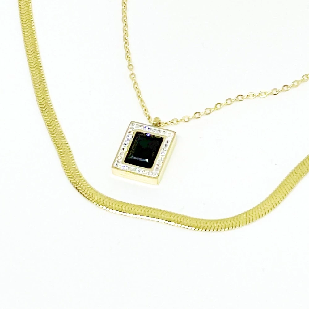 Γυναικείο επιχρυσωμένο διπλό κολιέ ERMINA KASS με τετράγωνο κρεμαστό διακοσμημένο με μεγάλη κρυστάλλινη πέτρα και διαοσμητικά λευκά ζιργκόν περιμετρικά.