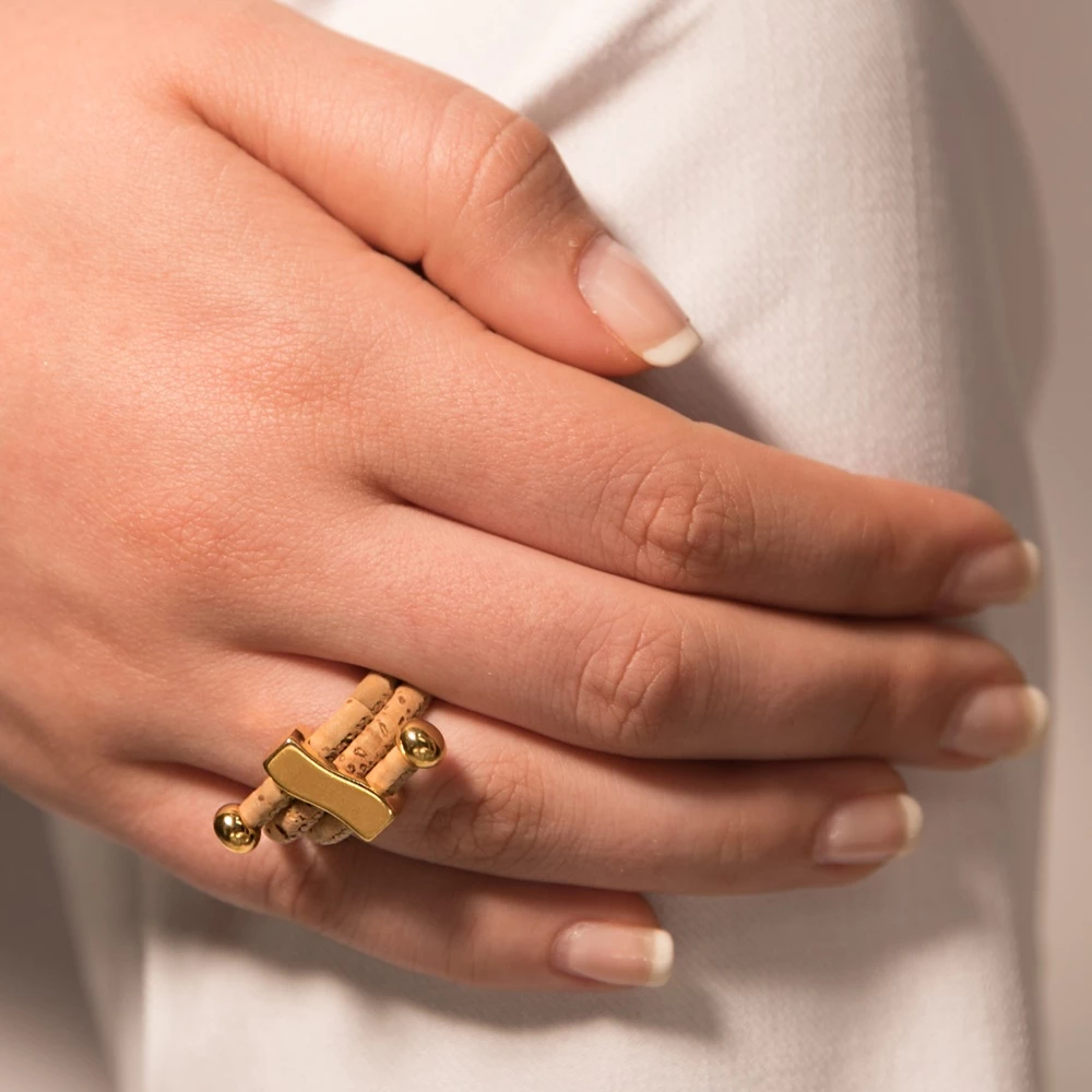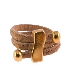Γυναικείο φαρδύ δαχτυλίδι APOXYLO από κορδόνι φυσικού φελλού, με διακοσμητική επιχρυσωμένη μεταλλική μπάρα. Αυξομειούμενο μέγεθος για να προσαρμόζεται σε όλα τα δάχτυλα. Συνοδεύεται από χειροποίητο κουτί Apoxylo.