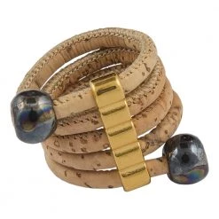 Γυναικείο φαρδύ δαχτυλίδι APOXYLO από κορδόνι φυσικού φελλού, με επιχρυσωμένη μεταλλική μπάρα και διακοσμητικές κεραμικές πέτρες σε μαύρο χρώμα. Αυξομειούμενο μέγεθος για να προσαρμόζεται σε όλα τα δάχτυλα. Συνοδεύεται από χειροποίητο κουτί Apoxylo.