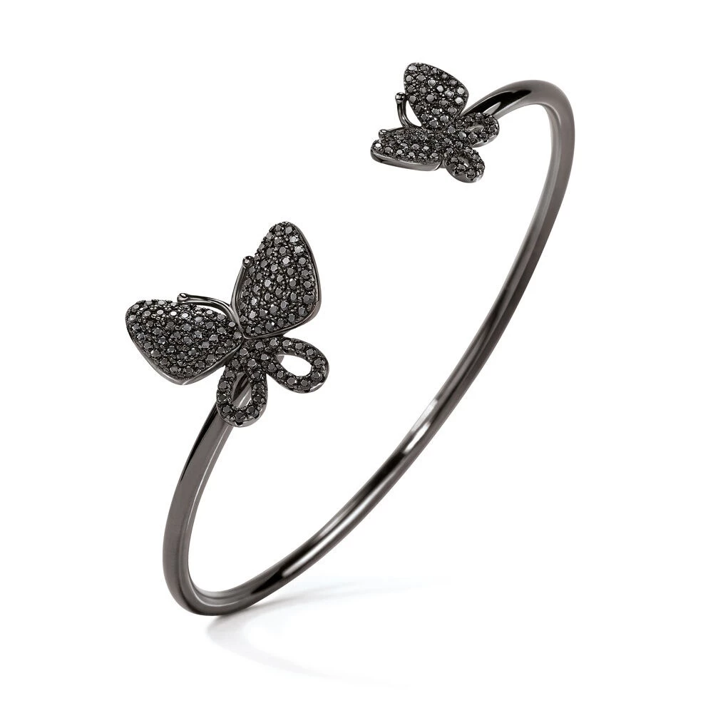 Γυναικείο flexy σταθερό βραχιόλι FOLLI FOLLIE της συλλογής Wonderfly από μαύρο επιμεταλλωμένο ασήμι 925. Μotif πεταλούδες διακοσμημένες με μαύρες πέτρες ζιργκόν. Για εντυπωσιακή λάμψη, σε κάθε σας εμφάνιση.