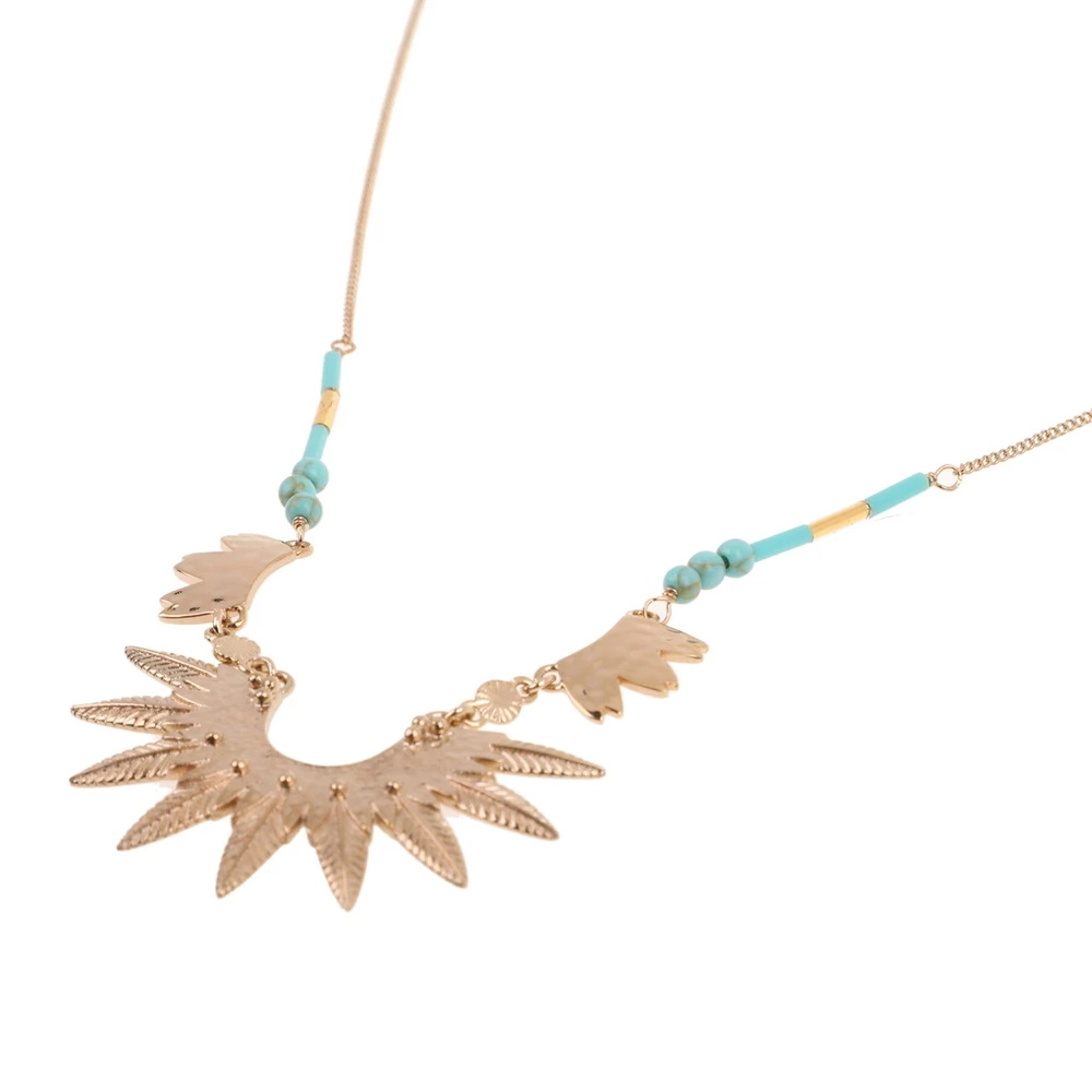 Γυναικείο κολιέ από αλυσίδα από χρυσή μεταλλική αλυσίδα και εντυπωσιακό κρεμαστό, διακοσμημένο με γαλάζιες πέτρες και χάντρες .Ένα statement κόσμημα που θα μεταμορφώσει κάθε σας look.