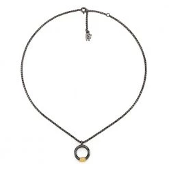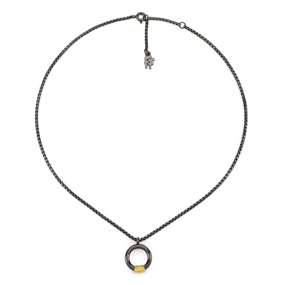 Γυναικείο κοντό κολιέ FOLLI FOLLIE ασημένιο 925 με gun επιμετάλλωση. Λεπτή αλυσίδα και στρογγυλό motif διακοσμημλενο με επιχρυσωμένες σε 18K λεπτομέρειες, από την συλλογή Desert Vibes Line.