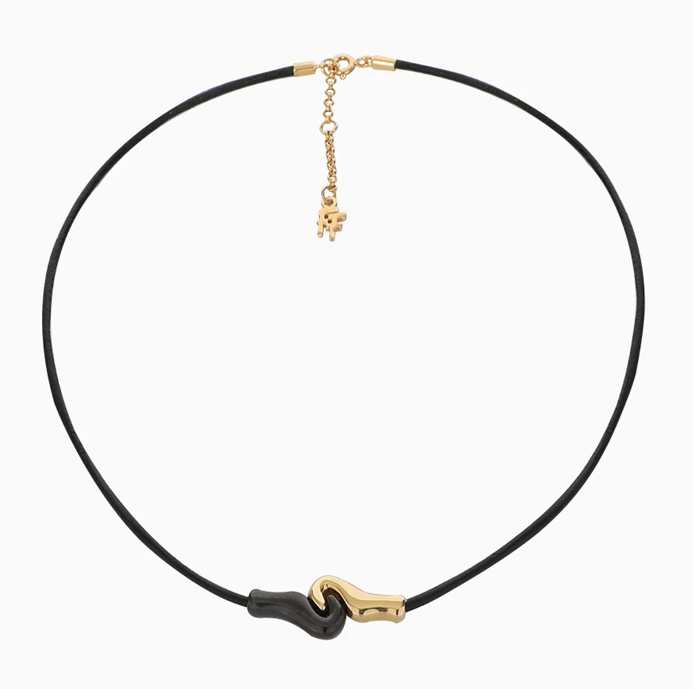 Γυναικείο κοντό κολιέ FOLLI FOLLIE της συλλογής Psyche. Κορδόνι από συνθετικό δέρμα και motif από ασήμι 925° με κίτρινη επιχρύσωση 18k και μαύρη επιμετάλλωση. Εμπνευσμένο από την 200ή επέτειο της απελευθέρωσης της Ελλάδας, τα 2 χέρια σε διαφορετικό χρώμα, όπου το ένα έρχεται να τραβήξει το άλλο, συμβολίζουν τη δύναμη ψυχής ως κινητήριο δύναμη για μια καλύτερη ζωή.