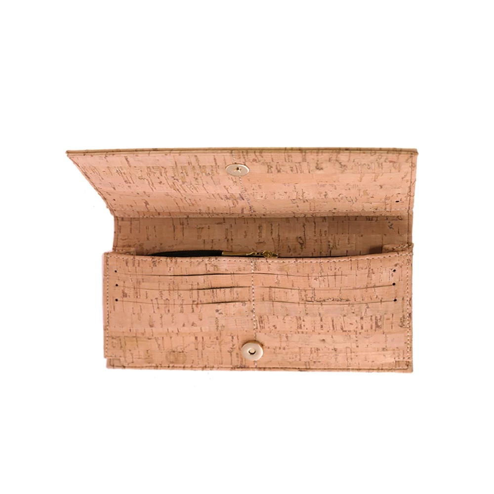 Γυναικείο χειροποίητο πορτοφόλι APOXYLO σε φυσικό φελλό. Αδιάβροχο, με καφέ φόδρα εσωτερικά και υποδοχές για κάρτες και θήκη για κέρματα. Ιδανική επιλογή για δώρο σε αγαπημένο σας πρόσωπο.