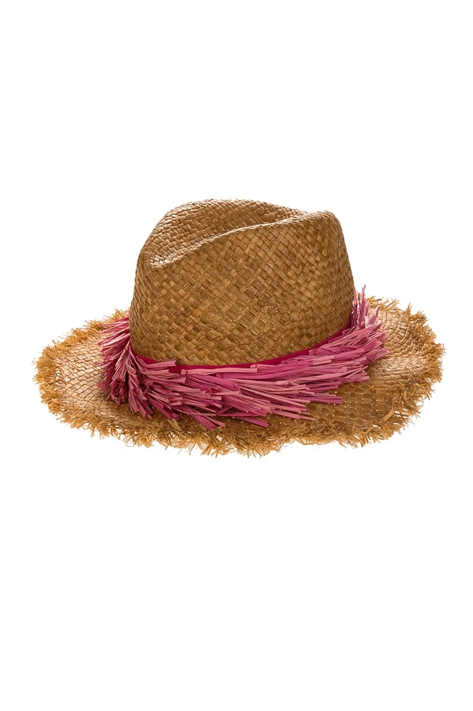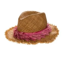 Γυναικείο ψάθινο καπέλο σε καφέ απόχρωση με ροζ ξέφτια. Ιδανική επιλογή για το νησί και την παραλία, αλλά και για να δώσετε μία καλοκαιρινή νότα στις εμφανίσεις σας στην πόλη!