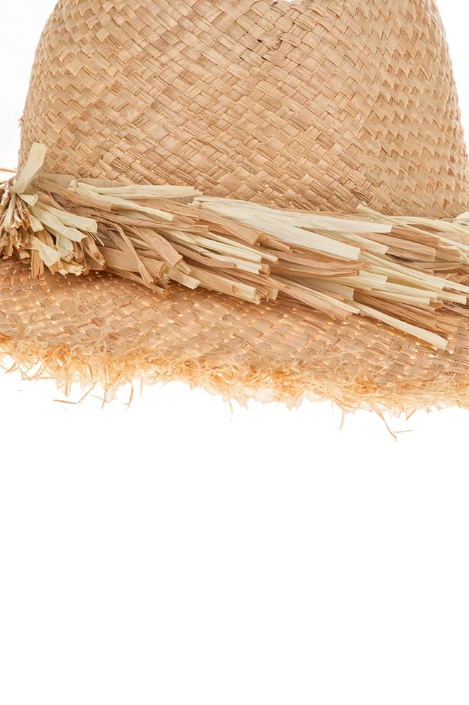 Γυναικείο ψάθινο καπέλο σε μπεζ απόχρωση με ξέφτια. Ιδανική επιλογή για το νησί και την παραλία, αλλά και για να δώσετε μία καλοκαιρινή νότα στις εμφανίσεις σας στην πόλη!