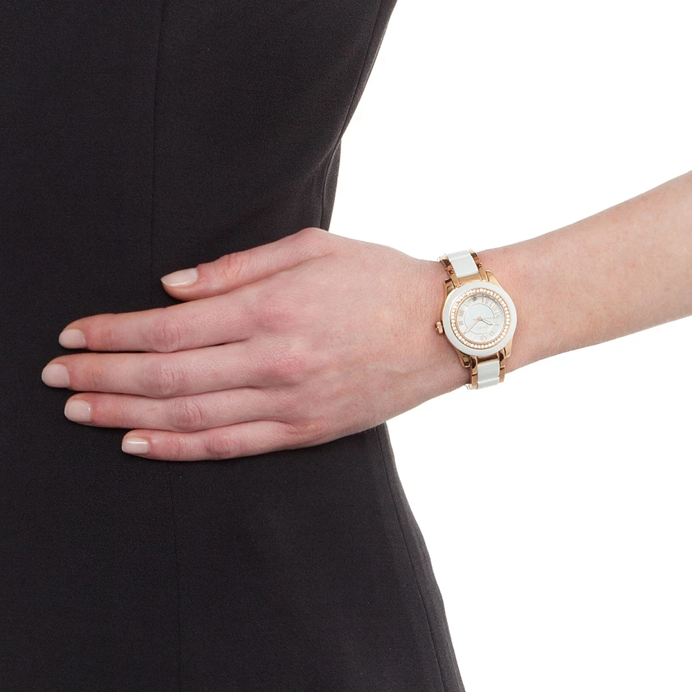 Το Folli Follie ρολόι από την συλλογή CERAMICA είναι το απόλυτο διαχρονικό κομμάτι για τη συλλογή σας. Χάρη στο εντυπωσιακό αλλά και πρακτικό λευκό μπρασελέ με κεραμικές λεπτομέρειες ολοκληρώνει ιδανικά τις καθημερινές εμφανίσεις σας στην πόλη. Απίστευτα σοφιστικέ είναι ταυτόχρονα και πολύ λειτουργικό χάρη στο λευκό καντράν. Οι μικρές κρυστάλλινες πέτρες στο καντράν προσδίδουν επιπλεόν στυλ και χαρακτήρα. Εγγύηση: 2 χρόνια για το μηχανισμό, 6 μήνες για τη μπαταρία.