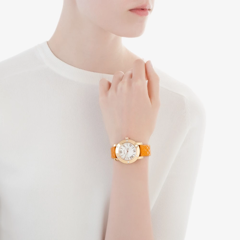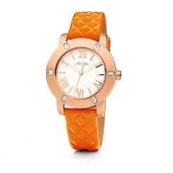 Γυναικείο ρολόι από τη συλλογή DONATELLA της Folli Follie. Διαθέτει εντυπωσιακό πορτοκαλί λουράκι από δέρμα, επιχρυσωμένη ροζ κάσα με κρύσταλλα και λευκό καντράν. Δώστε χρώμα και λάμψη στην καθημερινότητά σας. Εγγύηση: 2 χρόνια για το μηχανισμό, 6 μήνες για τη μπαταρία.