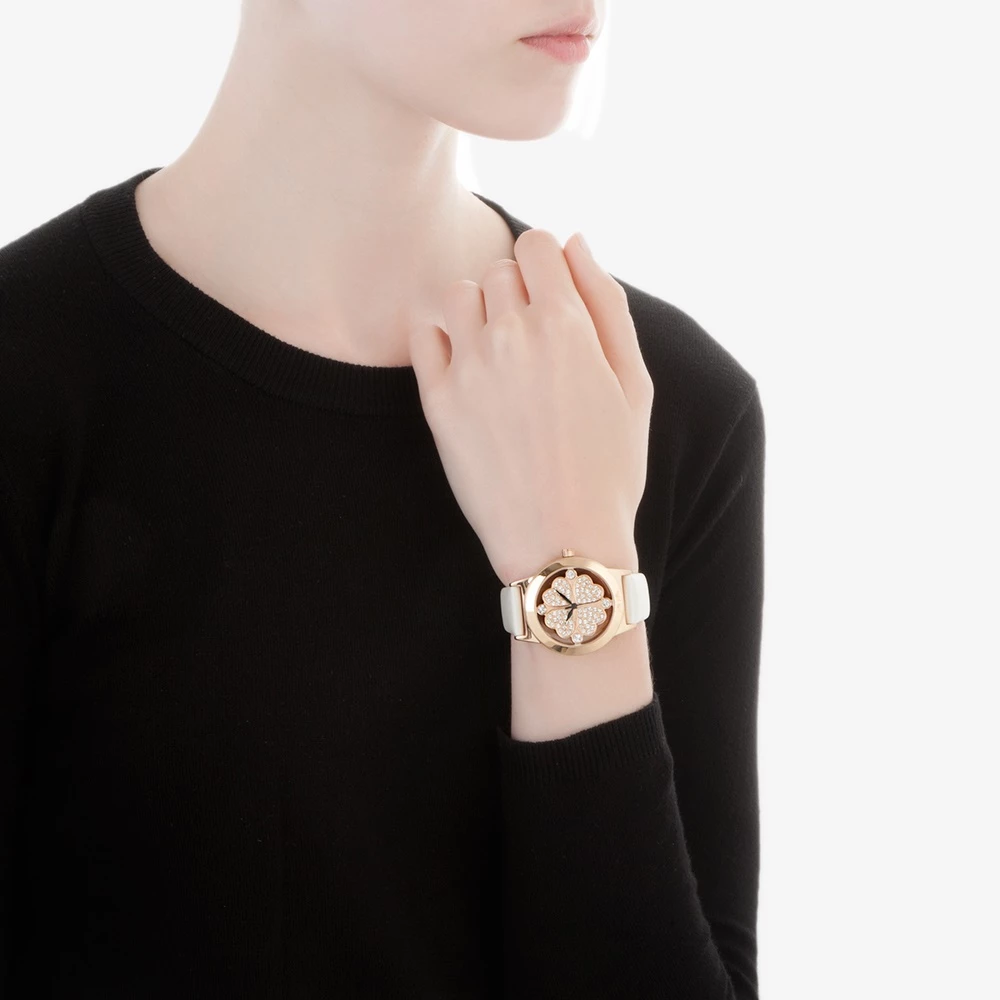 Γυναικείο ρολόι από τη συλλογή HEART 4 HEART της Folli Follie. Διαθέτει δερμάτινο λευκό λουράκι, στρογγυλή κάσα σε ροζ-χρυσή απόχρωση και εντυπωσιακό καντράν διακοσμημένο από τις χαρακτηριστικές ενωμένες καρδιές της συλλογής. Θα χαρίσει τη πολυτέλεια και τη λάμψη που επιθυμείτε στις καθημερινές σας εμφανίσεις.