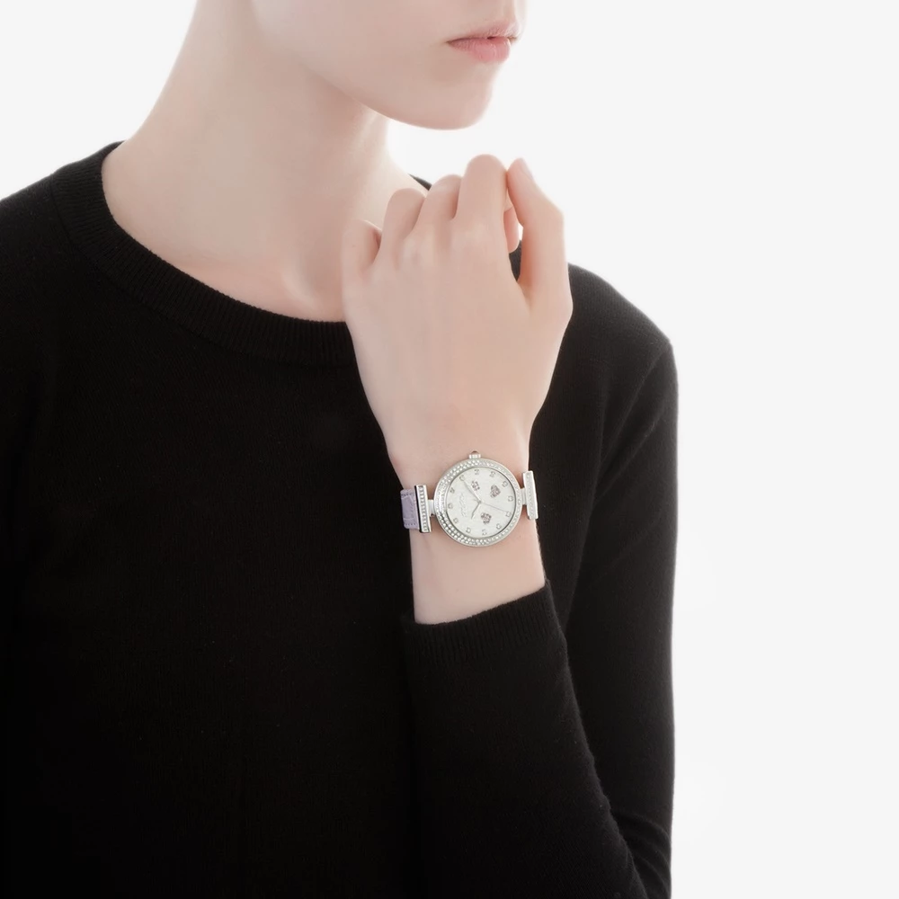 - Χρώμα καντράν: Λευκό με κρυστάλλινες διάφανες και λιλά πέτρες