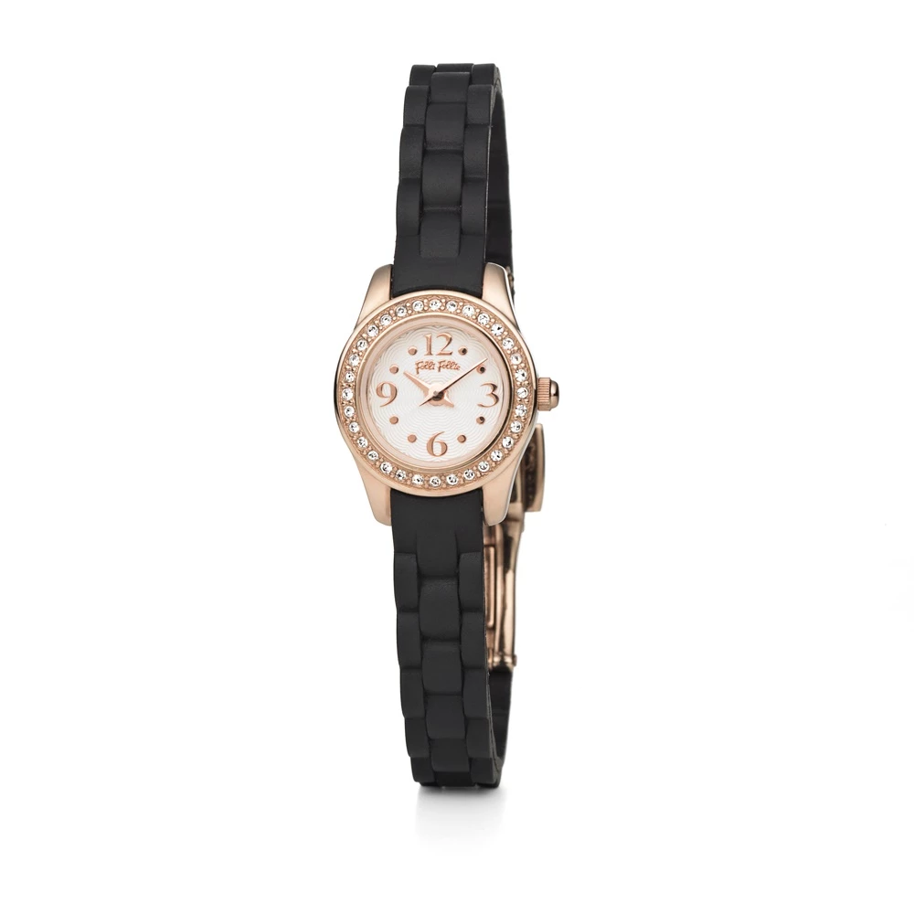 Το Folli Follie ρολόι από την συλλογή MINI MISS είναι το απόλυτο διαχρονικό κομμάτι για τη συλλογή σας. Χάρη στο λεπτό και πρακτικό μαύρο λουράκι καουτσούκ ολοκληρώνει ιδανικά τις καθημερινές εμφανίσεις σας στην πόλη. Οι κρυστάλλινες πέτρες στην κάσα προσδίδουν επιπλεόν στιλ και χαρακτήρα. Τόσο θηλυκό και κομψό που δεν θα το αποχωρίζεσαι!