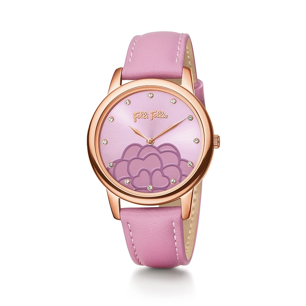 Γυναικείο ρολόι από την συλλογή SANTORINI FLOWER της Folli Follie με δερμάτινο λουράκι σε λιλά απόχρωση, στρογγυλή κάσα και καντράν διακοσμημένο από το χαρακτηριστικό λουλούδι της συλλογής. Θηλυκό και κομψό που δεν θα το αποχωρίζεσαι.