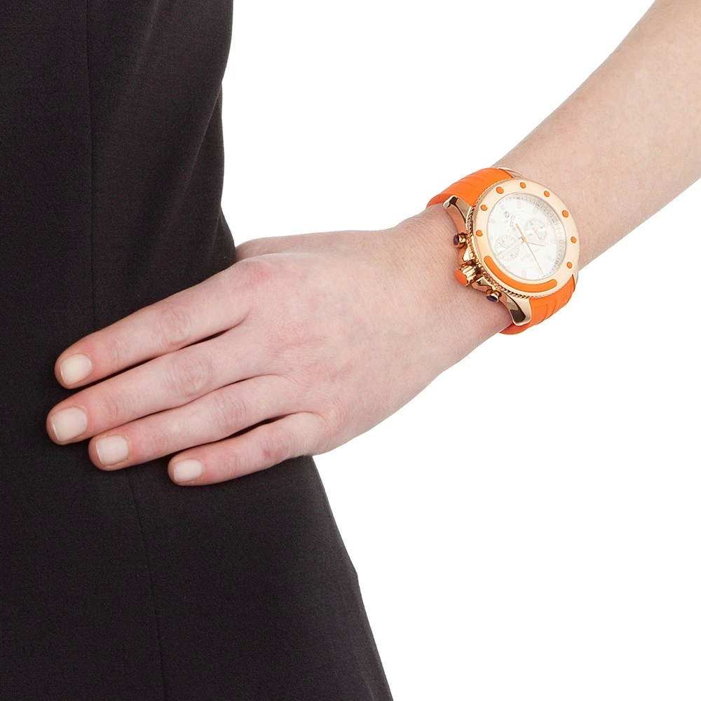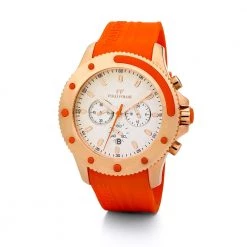Γυναικείο ρολόι από τη συλλογή Mini Water Champ της Folli Follie. Με εντυπωσιακό πορτοκαλί λουράκι και επιχρυσωμένες ροζ λεπτομέρειες θα προσθέσει μια σπορτίφ νότα στις καθημερινές σας εμφανίσεις. Αποτελεί επίσης, μια εξαιρετική πρόταση για τους καλοκαιρινούς μήνες και τις διακοπές σας. Εγγύηση: 2 χρόνια για το μηχανισμό, 6 μήνες για τη μπαταρία.