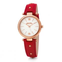 Γυναικείο ρολόι FOLLI FOLLIE από την συλλογή CYCLOS ROCKS. Λεπτό δερμάτινο λουράκι σε κόκκινο χρώμα με μεταλλικά τρουκς. Μικρή στρογγυλή κάσα και ασημί καντράν. Ένα κομψό casual ρολόι, ιδανικό για τις καθημερινές σας εμφανίσεις.