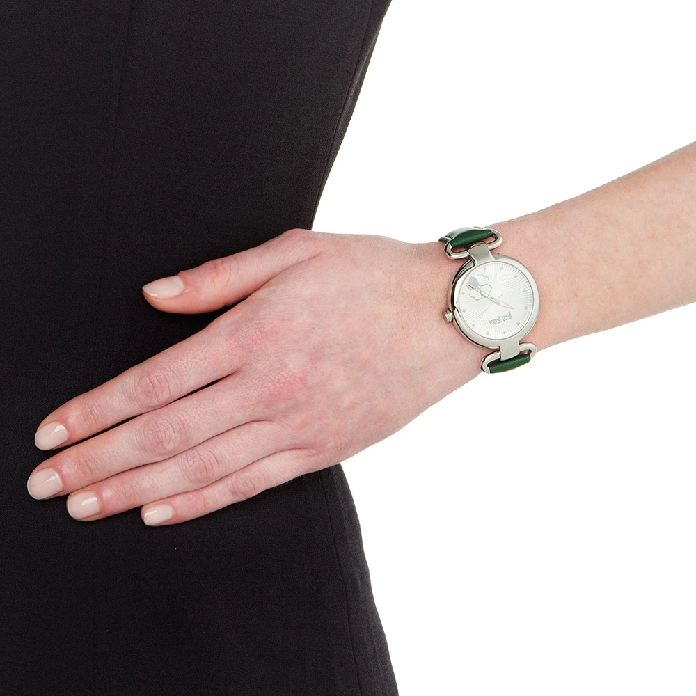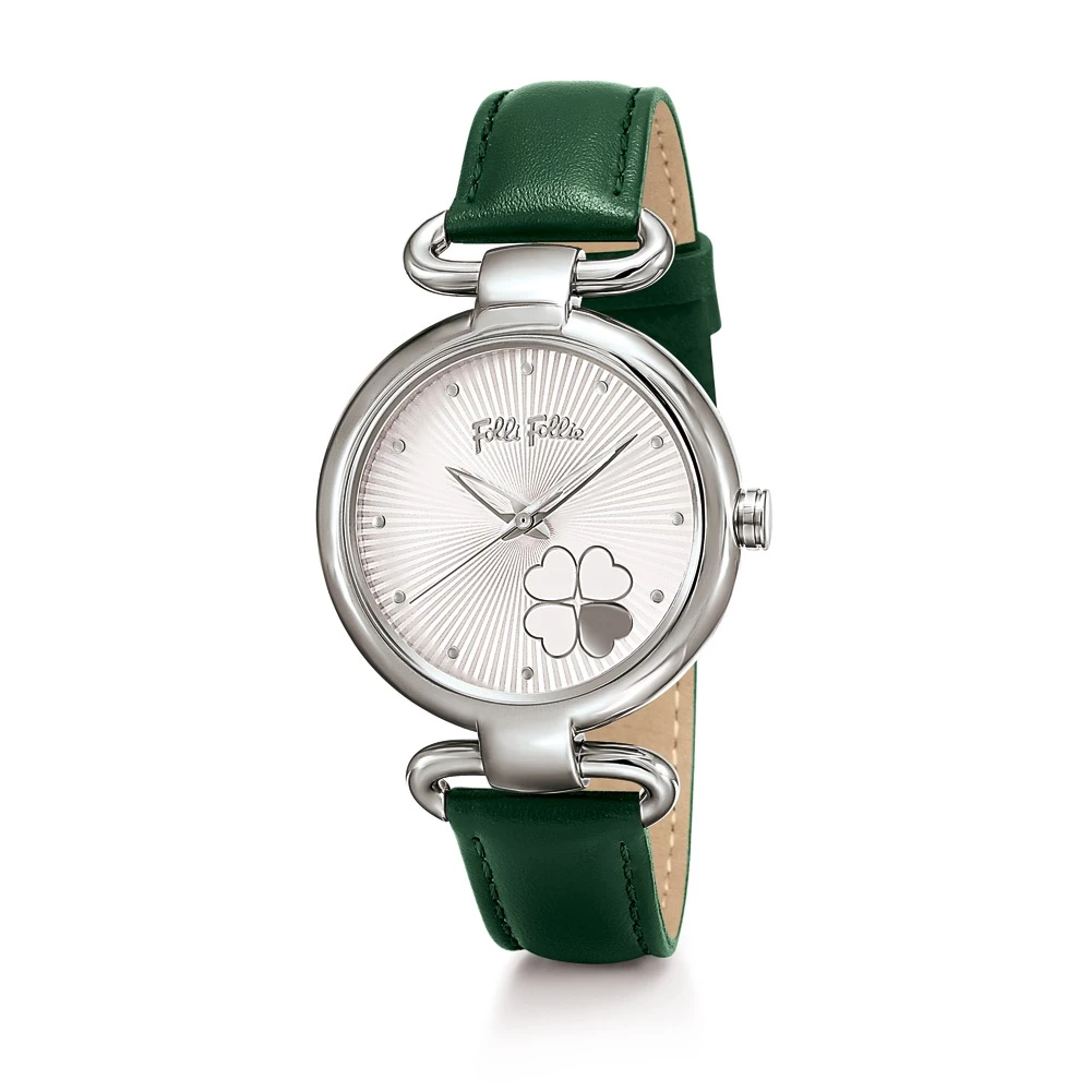 Γυναικείο ρολόι FOLLI FOLLIE από την συλλογή HEART 4 HEART. Με πράσινο δερμάτινο λουράκι και στρογγυλή κάσα από ανοξείδωτο ατσάλι. Λευκό καντράν με μικρό μοτίβο τις χαρακτηριστικές τέσσερεις καρδιές στον δείκτη 5. Ένα κομψό ρολόι που θα δώσει στιλ και χρώμα σε όλες τις εμφανίσεις σας.