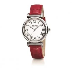 Γυναικείο ρολόι FOLLI FOLLIE από την συλλογή OBSESSION. Με κόκκινο δερμάτινο λουράκι και στρογγυλή κάσα από ανοξείδωτο ατσάλι. Λευκό καντράν με λατινικούς αριθμούς. Ένα κομψό ρολόι που θα δώσει στιλ και χρώμα σε όλες τις εμφανίσεις σας.