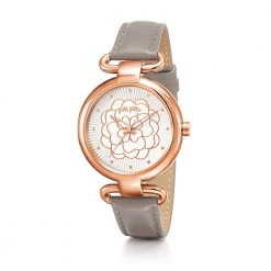 Γυναικείο ρολόι FOLLI FOLLIE από την συλλογή SANTORINI FLOWER. Με γκρι δερμάτινο λουράκι και στρογγυλή κάσα από επιμεταλλωμένο ροζ χρυσό ατσάλι. Λευκό καντράν με το λουλούδι της Σαντορίνης. Ένα κομψό ρολόι που θα δώσει στιλ και χρώμα σε όλες τις εμφανίσεις σας.
