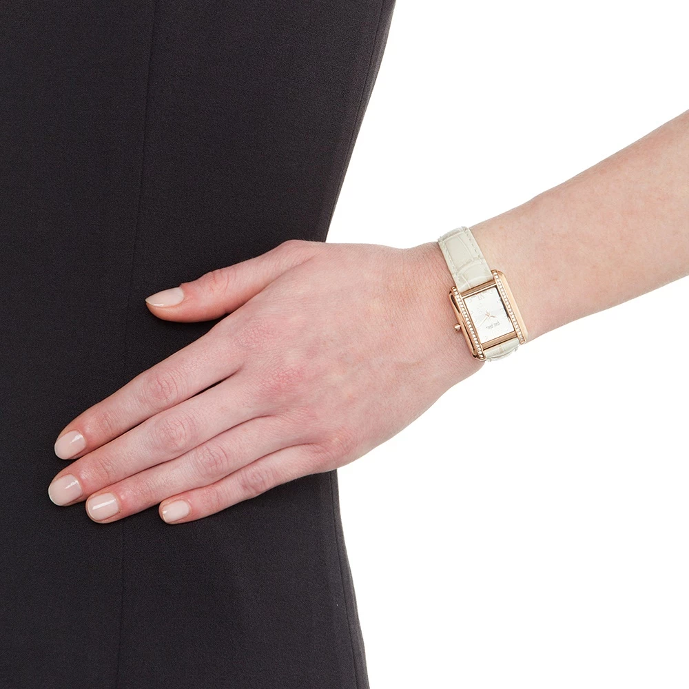 Γυναικείο ρολόι FOLLI FOLLIE από την συλλογή STYLE TALES. Με λευκό λουράκι από ανάγλυφο δέρμα. Τετράγωνη κάσα από επιμεταλλωμένο ροζ χρυσό ατσάλι και λευκές διακοσμητικές κρυστάλλινες πέτρες. Λευκό καντράν με κρυστάλλινες πέτρες και λατινικούς αριθμούς. Ένα κομψό ρολόι που θα δώσει στιλ και χρώμα σε όλες τις εμφανίσεις σας.
