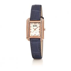Γυναικείο ρολόι FOLLI FOLLIE από την συλλογή STYLE TALES. Με μπλε λουράκι από ανάγλυφο δέρμα. Τετράγωνη κάσα από επιμεταλλωμένο ροζ χρυσό ατσάλι και λευκές διακοσμητικές κρυστάλλινες πέτρες. Λευκό καντράν με κρυστάλλινες πέτρες και λατινικούς αριθμούς. Ένα κομψό ρολόι που θα δώσει στιλ και χρώμα σε όλες τις εμφανίσεις σας.
