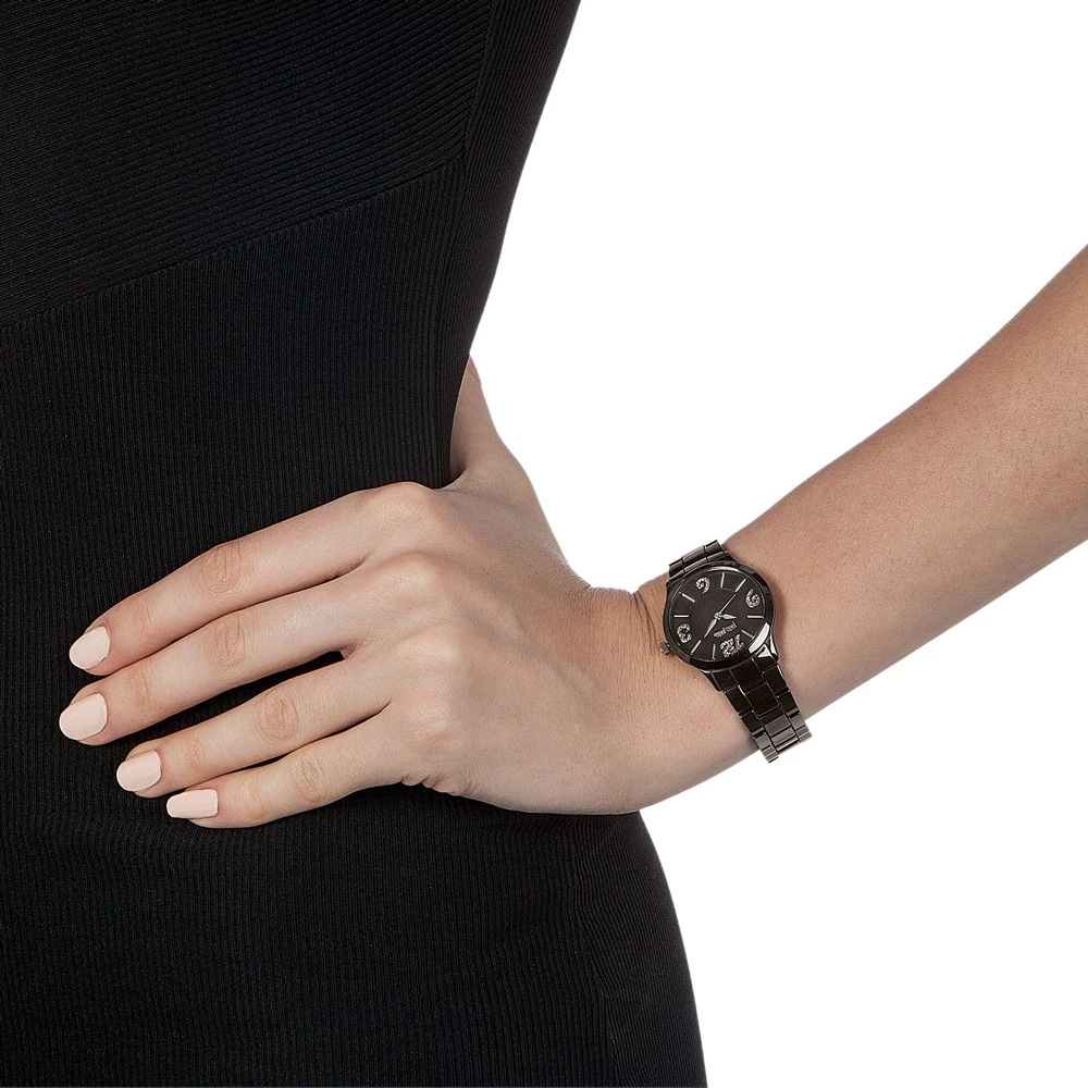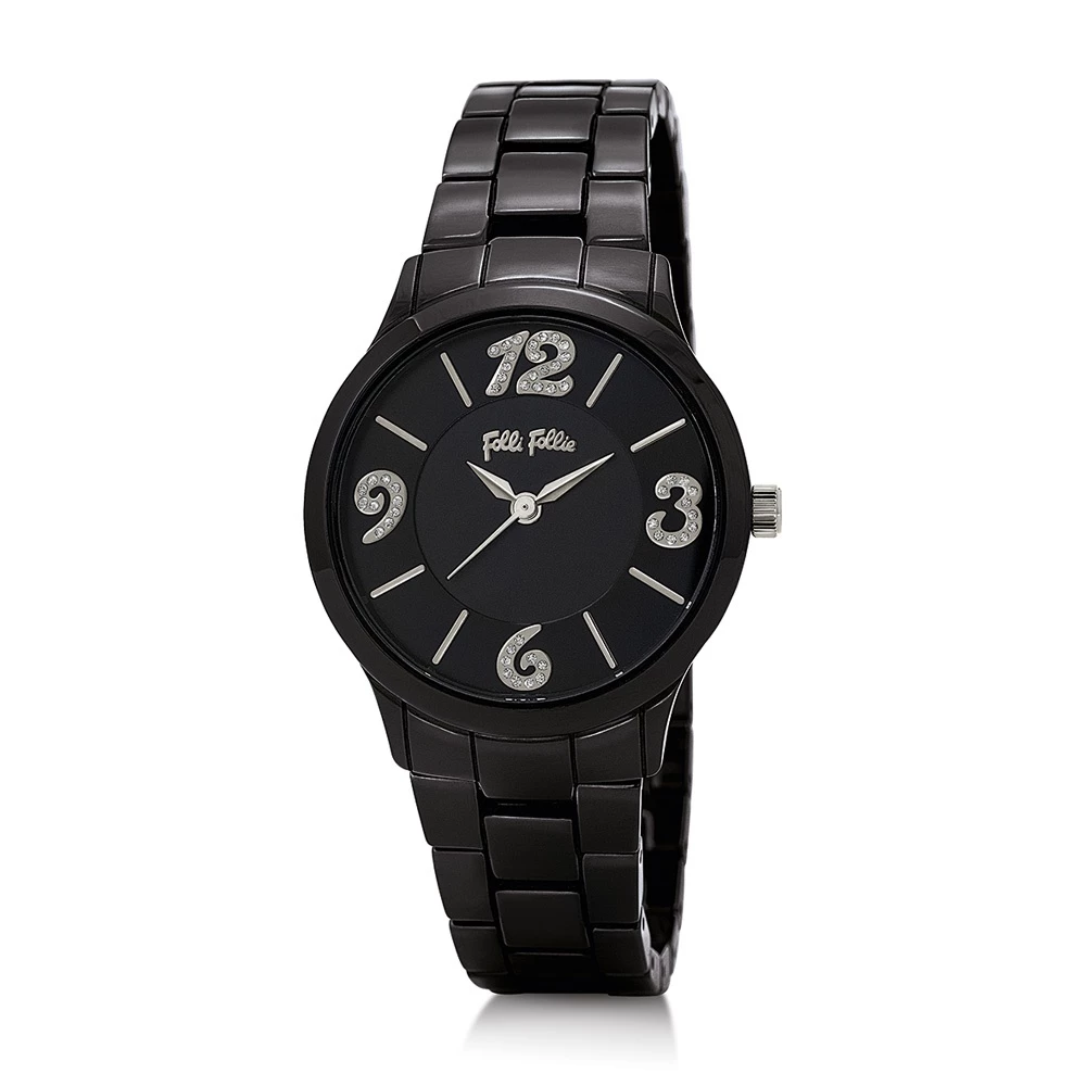 Γυναικείο ρολόι FOLLI FOLLIE από την συλλογή TIME TO PLAY. Με μπρασελέ από μαύρο κεραμικό και μικρή στρογγυλή κάσα από ανοξείδωτο ατσάλι. Μαύρο καντράν και αριθμοί με εφέ ασημί glitter. Ένα κομψό ρολόι που θα ολοκληρώσει όλες τις καθημερινές σας εμφανίσεις με στιλ.